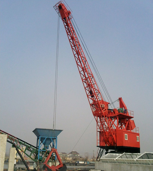 固定式起重機(jī)是港口碼頭前沿一般裝載散貨和件雜貨的通用港口起重機(jī)??膳渖系蹉^或抓斗作業(yè),主要用于海港、河港、也可用于堆場(chǎng)及貨站等作業(yè)場(chǎng)所。